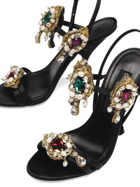 105mm embellished stiletto sandals Highlights - Black - Jewel embellishment - Ankle strap - Open toe Made in Italy Composition Lining: Goat Skin 68%, Viscose 23%, Silk 9% Outer: Viscose 74%, Silk 25%, Lamb Skin 1% Sole: Rubber 100%, Leather 100% SIZE & FIT Measurement HEEL 4.13 in(10.5 cm)