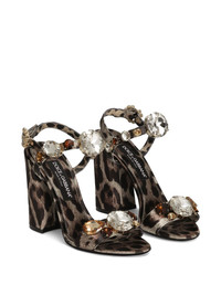 105mm gemstone-embellished sandals Highlights - Beige - Buckle-fastening ankle strap - High block heel - All-over leopard print - Logo plaque Made in Italy Composition Lining: Goat Skin 71%, Polyester 29% Outer: Polyester 100% Sole: Calf Leather 100%, Rubber 100% SIZE & FIT Measurement HEEL 4.13 in(10.5 cm)