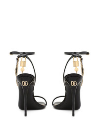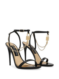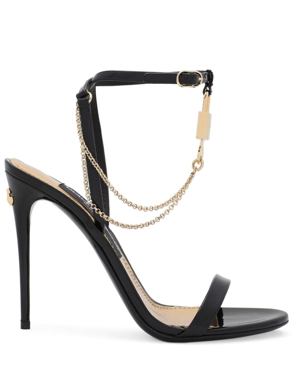 105mm Keira chain-link sandals Highlights - Black - Calf leather - Patent finish - Gold-tone logo plaque - Chain-link detailing - Padlock detail - Buckle-fastening ankle strap - Almond toe - Branded insole - High heel Made in Italy Composition Outer: Calf Leather 100% Lining: Calf Leather 100% Sole: Calf Leather 100%