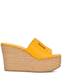 110mm cut out-detail espadrilles Highlights - Mustard yellow - Calf leather - Logo lettering - Open toe - Slip-on style - Branded footbed - 110mm wedge heel - Platform sole Made in Italy Composition Lining: Calf Leather 100% Outer: Calf Leather 55%, Jute 45% Sole: Calf Leather 100%