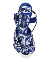 125mm floral-motif heeled sandals Highlights - Blue/white - Floral motif - Buckle-fastening ankle strap - Open round toe - Branded insole - Bow detail - Block heel Made in Italy Composition Outer: Cotton 100% Sole: Calf Leather 100% Lining: Calf Leather 100%