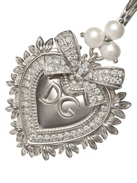 18K white gold Devotion diamond and pearl earrings We're devoted to this pair from Dolce & Gabbana. Crafted in 18kt white gold, these Devotion diamond and pearl sacred heart earrings are quite simply charming. We're in love. Highlights - 18kt white gold - Sacred heart - Engraved logo - Pave set 0.35ct diamonds - Freshwater pearl detailing - French hook - For pierced ears - These earrings come as a pair. Made in Italy Composition Diamond 100%, 18kt White Gold 100%, Freshwater Pearl 100%