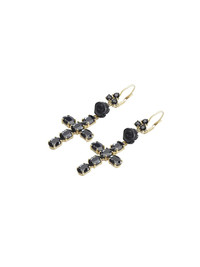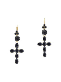 18K yellow gold Sicily sapphire earrings Faithfulness comes in many forms and for Dolce & Gabbana it manifests itself as a pair of earrings. Crafted in 18kt yellow gold, these Devotion leverbacks feature three elements elegantly arranged from top to bottom in the following order: a clover of black sapphires, a refined black jade rose and a Latin cross composed of oval black sapphires. We're devoted. Highlights - 18kt yellow gold - Cross design - 18 round and oval black sapphires - 2 black jade roses - Leverback closure - Engraved logo - For pierced ears - These earrings come as a pair. - Your purchase will arrive with a gift box. Made in Italy Composition Jade 100%, 18kt Yellow Gold 100%, Black Sapphire 100%