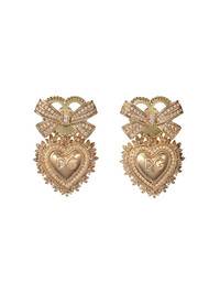 18K yellow gold Devotion diamond earrings What are you devoted to? Well, constructed from 18kt yellow gold and adorned with diamonds, these Devotion earrings from Dolce & Gabbana could use some worship. Be grateful. Highlights - 18kt yellow gold - Post back closure - Bow detailing - Sacred heart - Engraved logo - Diamonds with 0.45ct - These earrings come as a pair. Made in Italy Composition Diamond 100%, 18kt Yellow Gold 100%