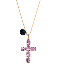 18kt yellow gold sapphire cross charm necklace What are you devoted to? Well, constructed from 18kt yellow gold and adorned with sapphires, this cross charm necklace from Dolce & Gabbana could use some worship. Be grateful. Made in Italy Composition Jade 100%, 18kt Yellow Gold 100%, Pink Sapphire 100% SIZE & FIT Measurement Length when open 21.65 in(55 cm)