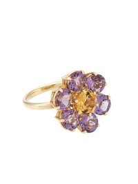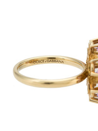 18K yellow gold Spring amethyst ring Dolce & Gabbana's ring is a celebration of spring. Cast from 18kt yellow gold, it's topped with floral motifs inlaid with colourful amethysts and citrine gems. Highlights - 18kt yellow gold - Cocktail band - Engraved logo - Amethyst - Citrine - Twisted wire - Floral motif - Engraved logo Made in Italy Composition Gold 100% SIZE & FIT Model measurements Height 5 ft 9 in(1.76 m) Bust/Chest 33.07 in(84 cm) Hips 34.64 in(88 cm) Waist 25.59 in(65 cm) Measurement Band Width 0.11 in(0.3 cm) CIRCUMFERENCE 5.51 in(14 cm) Feature Length 0.78 in(2 cm) Feature Width 0.78 in(2 cm)