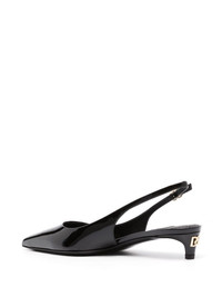 40mm patent slingback pumps Equal parts sleek and practical, these black Dolce & Gabbana pumps are crafted to a sharp point-toe silhouette with a low kitten heel backed with a gold-tone logo plaque. A buckled slingback strap allows for an adjustable fit. Highlights - Black - Calf leather - Patent finish - Gold-tone logo plaque - Buckle-fastening slingback strap - Pointed toe - Branded leather insole - Kitten heel Made in Italy Composition Outer: Patent Calf Leather 100% Lining: Calf Leather 100% Sole: Calf Leather 100% SIZE & FIT Measurement HEEL 1.57 in(4 cm)