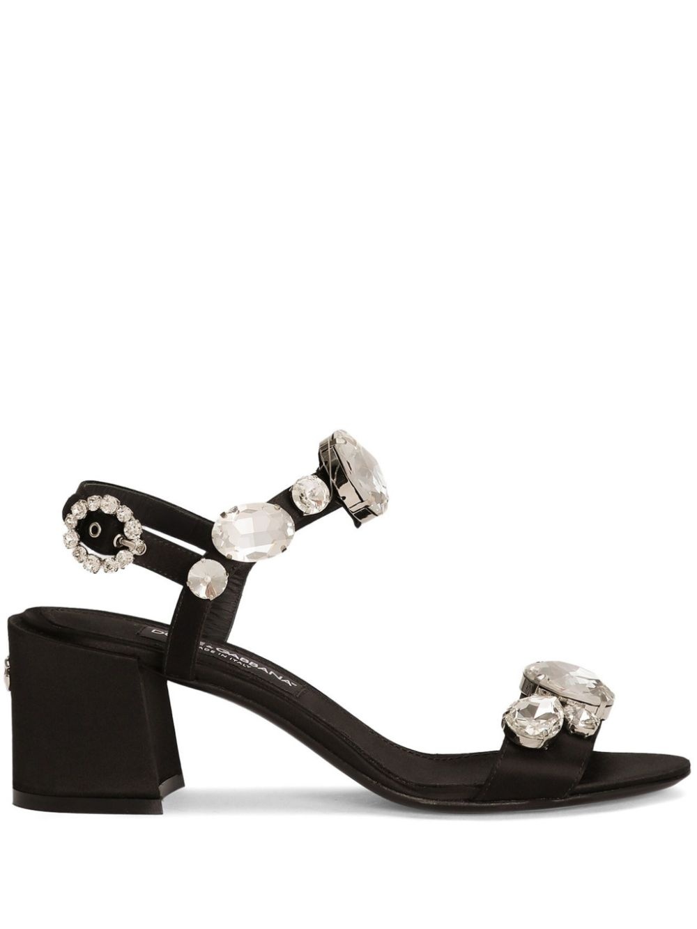 60mm crystal-embellished sandals Highlights - Black - Buckle-fastening ankle strap - Almond open toe - Branded insole - Mid block heel Made in Italy Composition Silk 100% SIZE & FIT Measurement HEEL 2.36 in(6 cm)