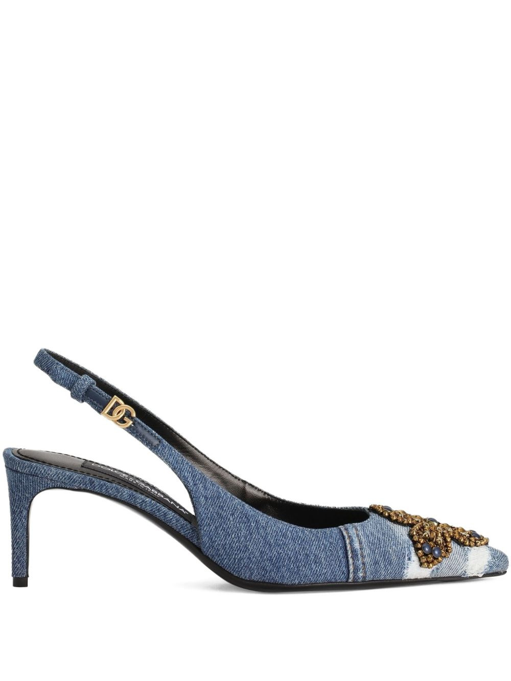 60mm embellished denim pumps Highlights - Blue - Denim - Jewel embellishment - Slingback strap - Pointed toe Made in Italy Composition Sole: Calf Leather 100% Lining: Calf Leather 100% Outer: Cotton 100% SIZE & FIT Measurement HEEL 2.36 in(6 cm)