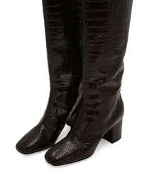 60mm logo-plaque leather boots Highlights - Brown - Calf leather - Embossed crocodile effect - Gold-tone logo plaque - Square toe - Slip-on style - Branded leather insole - 60mm block heel - Leather sole Made in Italy Composition Lining: Calf Leather 70%, Goat Skin 30% Outer: Calf Leather 100% Sole: Calf Leather 100%