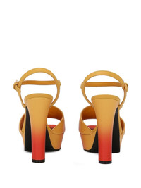 85mm platform leather sandals Highlights - Light orange/burnt orange - Calf leather - Smooth grain - Ombre effect - Logo-embossed strap - Round open toe - Buckle-fastening ankle strap - Slingback strap - Branded leather insole - High block heel - Platform sole Made in Italy Composition Sole: Leather 100% Outer: Calf Leather 100% Lining: Goat Skin 80%, Calf Leather 20% SIZE & FIT Measurement HEEL 3.34 in(8.5 cm)