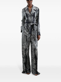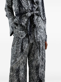 Silk satin pajama pants with fur print