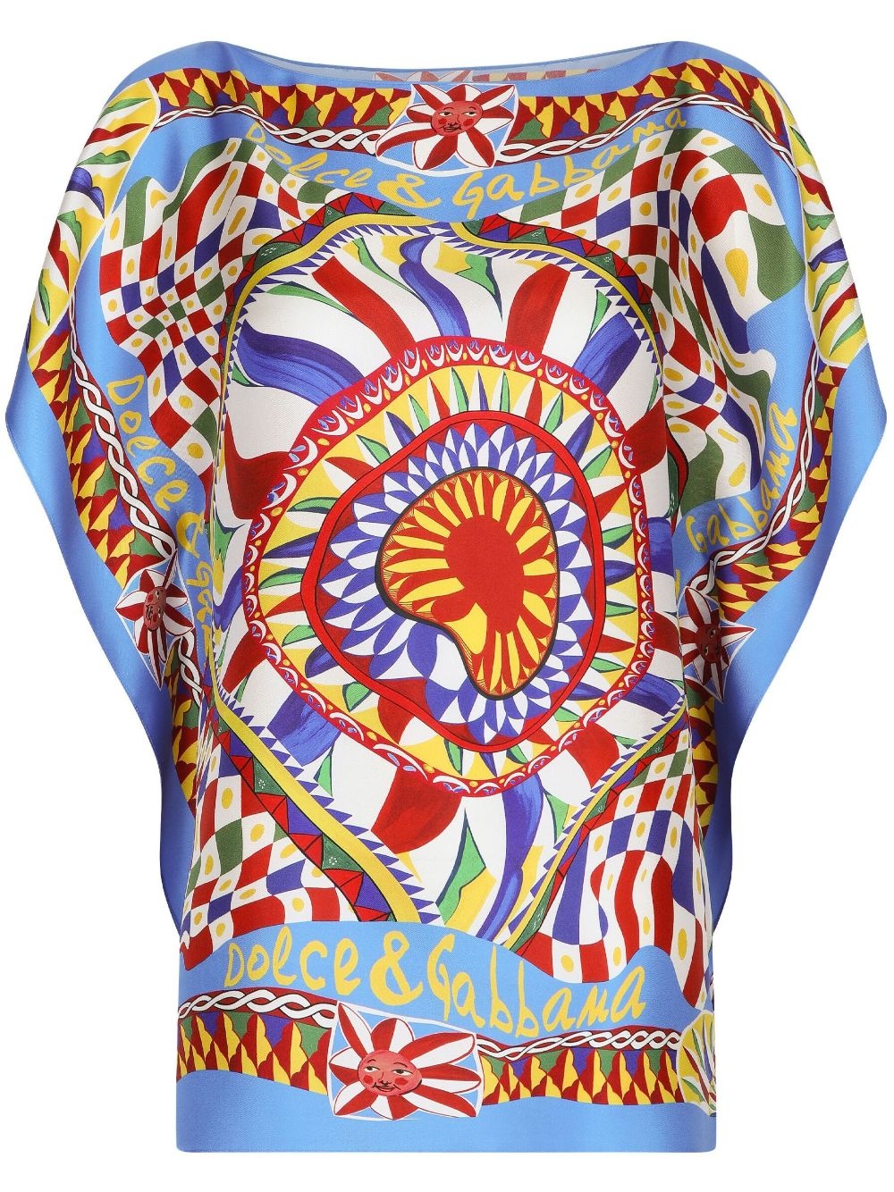 abstract-print silk blouse Crafted from soft silk, this blouse from Dolce & Gabbana is cut in a flowy silhouette for AW23. The garment is defined by a bold abstract print and colourful design. Highlights - Multicolour - Silk - Abstract pattern print - Round neck - Short draped sleeves - Straight hem Made in Italy Composition Silk 100%