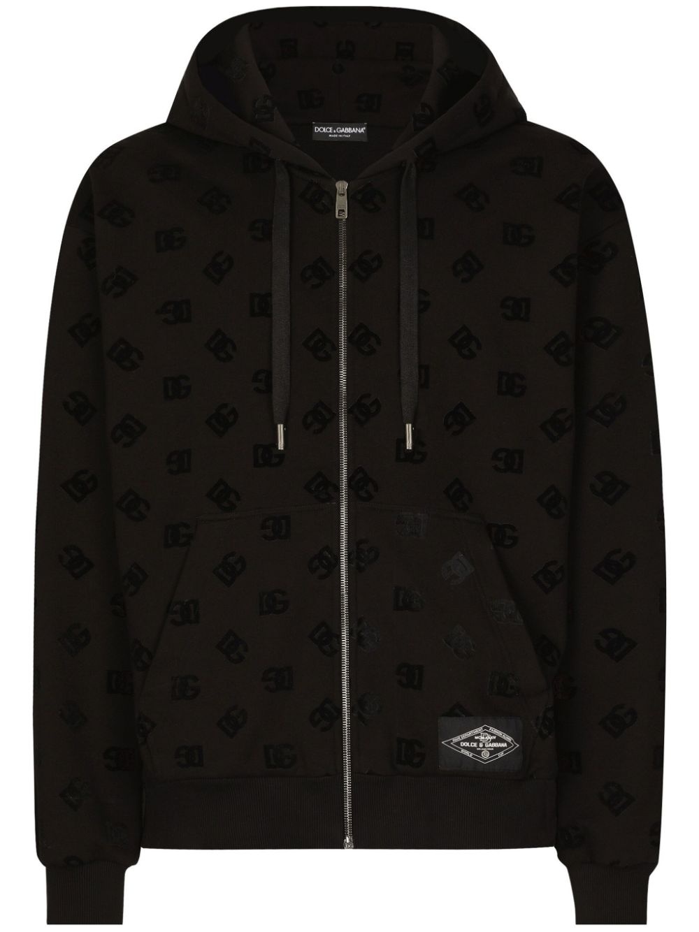 All-over-debossed logo hoodie Highlights - Black - Cotton - Jersey texture - All-over debossed logo print - Logo tag - Ribbed cuffs - Front zip fastening - Slouchy drawstring hood - Long sleeves Made in Italy Composition Outer: Cotton 100% Lining: Cotton 100%