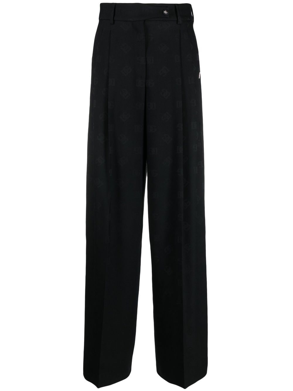 all-over logo print trousers black all-over logo print concealed front fastening belt loops two side slit pockets two rear welt pockets wide leg Made in Italy Composition Virgin Wool 36%, Polyester 34%, Wool 28%, Spandex/Elastane 2% SIZE & FIT Model measurements Height 5 ft 10 in(1.79 m) Bust/Chest 31.1 in(79 cm) Hips 35.03 in(89 cm) Waist 24.01 in(61 cm) FittingInformation This piece fits true to size. We recommend you get your regular size Designed to be fitted at the waist and hips, loose over the leg Made with a mid-weight stretch fabric Washing instructions Dry Clean Only