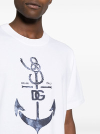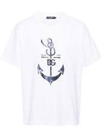 anchor-print cotton T-shirt Highlights - White/navy blue - Cotton - Anchor print - Logo print to the front - Crew neck - Short sleeves - Straight hem Made in Italy Composition Cotton 100% SIZE & FIT Model measurements Height 6 ft 2 in(1.88 m) Bust/Chest 36.61 in(93 cm) Hips 35.82 in(91 cm) Waist 27.95 in(71 cm) FittingInformation Designed for a relaxed fit, this piece allows for comfort and movement when worn Made from a midweight non-stretch fabric, this piece offers minimal elasticity when worn This piece fits true to size – take your usual size Washing instructions Machine Wash