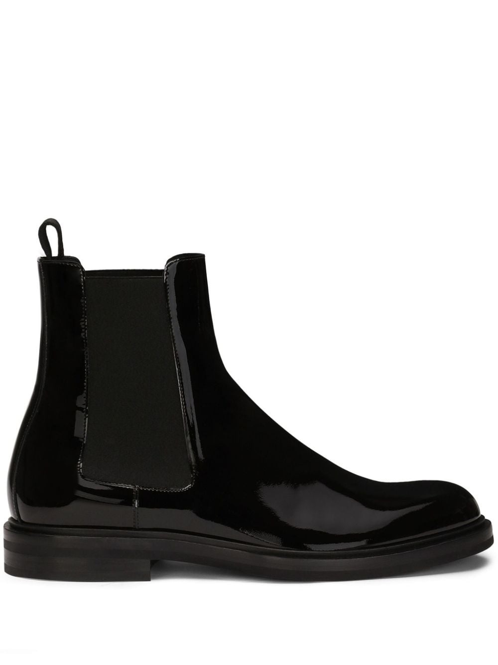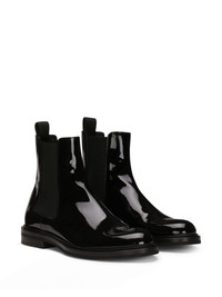 leather Chelsea boots Highlights - Black - Calf leather - Patent finish - Elasticated side panels - Pull-tab at the heel - Round toe - Rubber sole - Ankle-length Made in Italy Composition Outer: Calf Leather 100% Lining: Lamb Skin 90%, Goat Skin 10% Sole: Rubber 100%