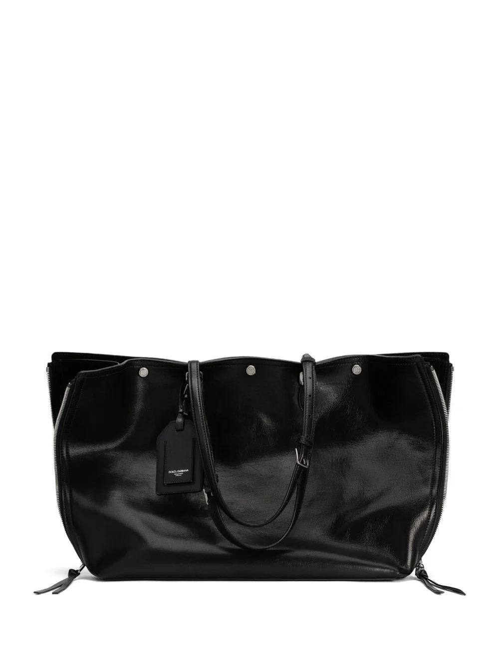 Atene tote bag Highlights - Black - Leather - Side zip detail - Top handles - Silver-tone hardware - Logo tag Made in Italy Composition Outer: CALFSKIN 95%, PVC 5% Lining: CALFSKIN 90%, Cotton 10% SIZE & FIT Measurement DEPTH 4.72 in(12 cm) HEIGHT 13.97 in(35.5 cm) WIDTH 15.74 in(40 cm)