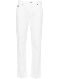 Audrey slim-leg jeans The hallmark logo plaque at the back pocket of Dolce & Gabbana's Audrey jeans stands out against the white denim. They’re cut to sit at the waist before falling to a slim leg. Highlights - White - Stretch-cotton - Denim - Button and concealed zip fly fastening - Mid-rise - Belt loops - Mini logo tag - Classic five-pocket design - Logo plaque to the rear - Slim cut Made in Italy Composition Cotton 98%, Spandex/Elastane 2% SIZE & FIT Model measurements Height 5 ft 11 in(1.8 m) Bust/Chest 30.7 in(78 cm) Hips 35.03 in(89 cm) Waist 24.4 in(62 cm) FittingInformation Designed for a slim fit, these jeans offer a close fit at the waist and sit just away from the leg Constructed from stretch denim, this piece offers a stretch fit with durability This piece fits true to size – take your usual size Washing instructions Machine Wash