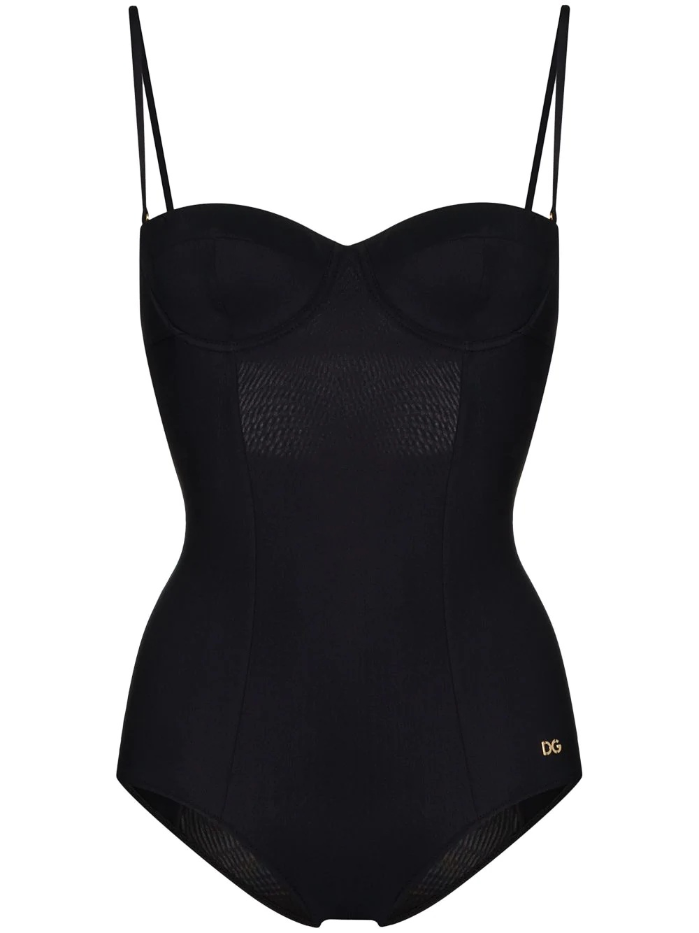 logo-tag balconette swimsuit If you're after a little more coverage when you hit the beach, Dolce & Gabbana's swimsuit has you covered - in more ways than one. It's designed to smooth your stomach, hips and bum, it has flattering balconette cups. You're welcome. Highlights - This black dolce & gabbana balconette swimsuit features removable shoulder straps, a sweetheart neckline, an adjustable back strap and low cut legs. gazing at this dolce & gabbana one-piece has us reminiscing of our summer spent in capri. so naturally, we had to get it. Made in Italy Composition Polyamide 75%, Elastane 25% SIZE & FIT Model measurements Height 5 ft 9 in(1.74 m) Bust/Chest 32.28 in(82 cm) Hips 35.82 in(91 cm) Waist 24.01 in(61 cm) Measurement BUST 22.83 in(58 cm) FittingInformation This piece fits true to size. We recommend you get your regular size Made with a mid-weight stretch fabric Washing instructions Hand Wash