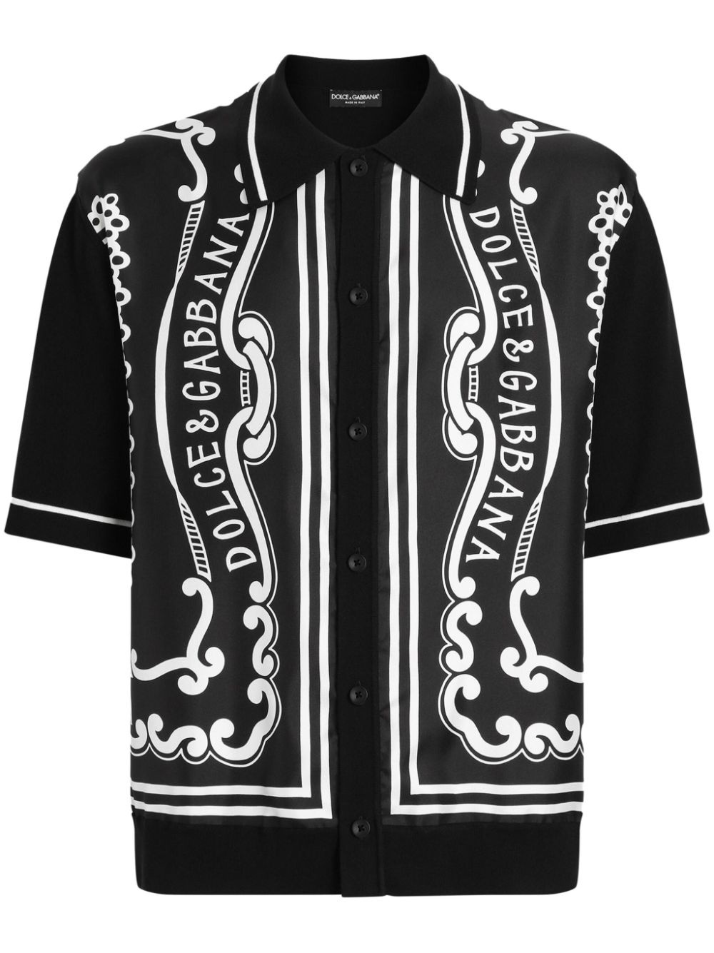bandanna-print shirt Highlights - Black - Front button fastening - Logo print to the front - Stripe detailing - Short sleeves Made in Italy Composition Silk 75%, Cotton 24%, Polyamide 1%