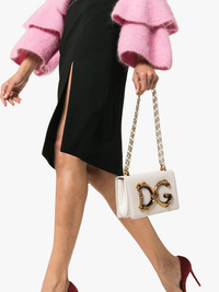 DG Girls shoulder bag Highlights - White - Nappa leather - Gold-tone logo plaque - Gold-tone hardware - Sliding chain-link shoulder strap - Foldover top with magnetic fastening - Main compartment - Internal logo plaque - This piece comes complete with a protective dust bag. Made in Italy Composition Outer: Lamb Skin 100% SIZE & FIT Model measurements Height 5 ft 10 in(1.79 m) Bust/Chest 32.67 in(83 cm) Hips 35.43 in(90 cm) Waist 23.62 in(60 cm) Measurement WIDTH 8.26 in(21 cm) HEIGHT 4.72 in(12 cm) DEPTH 1.96 in(5 cm) STRAP 12.59 in(32 cm)