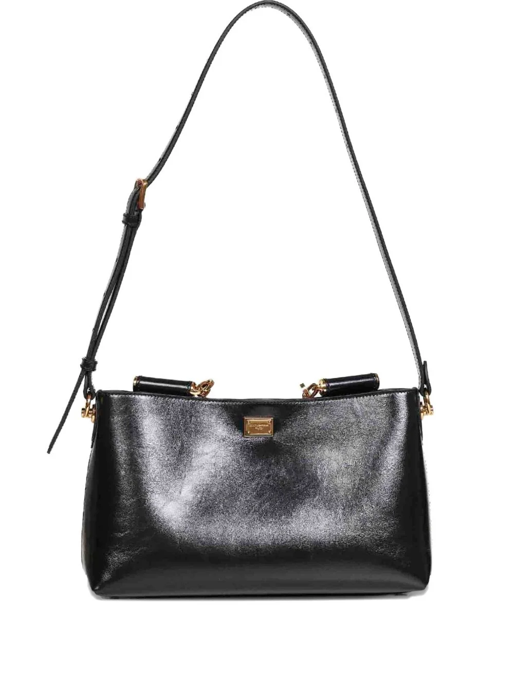 BB7896AZ000 80999 BLACK Highlights - Black - Shiny finish - Gold-tone logo tag front and back - Single rounded handle - Adjustable shoulder strap Made in Italy Composition Outer: Calf Leather 100% SIZE & FIT Measurement DEPTH 1.57 in(4 cm) HEIGHT 7.87 in(20 cm) WIDTH 15.35 in(39 cm)