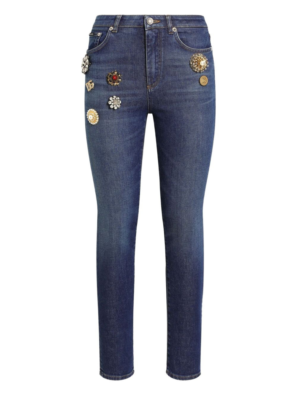 bejeweled high-rise jeans Highlights - Dark indigo blue - Embellished brooch details - Five-pocket design - Zip fly fastening - Belt loops Made in Italy Composition Cotton 98%, Spandex/Elastane 2% Washing instructions Read Manufacturer Guidelines