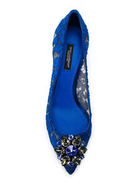 Rainbow Lace 60mm brooch-detail pumps Highlights - In a rich royal blue, these bellucci pumps from dolce & gabbana have been exquisitely crafted in italy from the finest taormina lace and form part of the italian fashion house’s rainbow lace collection - a special range of footwear and accessories that take inspiration from the many colours seen in a rainbow. featuring a pointed toe, a leather branded insole, a comfy kitten heel and a luxe leather sole, these pretty bellucci pumps are finished with a sparkling crystal flower detail to the front. Made in Italy Composition Silk 100% SIZE & FIT Measurement HEEL 2.36 in(6 cm)