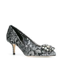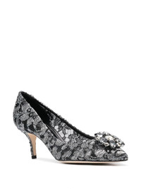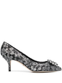 Rainbow Lace 60mm brooch-detail pumps Highlights - In versatile grey, these bellucci pumps from dolce & gabbana have been exquisitely crafted in italy from the finest taormina lace. they feature a pointed toe, a floral lace pattern, metallic threading, rhinestone embellishments, a branded insole, a leather insole, a stiletto heel, a low heel and a leather sole. Made in Italy Composition Outer: Swarovski Crystal 100%, Lurex 100%, Polyamide 80%, Polyester 17%, Lamb Skin 3% Lining: Calf Leather 100%, Polyurethane 100% Sole: Calf Leather 100% SIZE & FIT Measurement HEEL 2.75 in(7 cm)