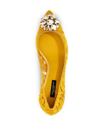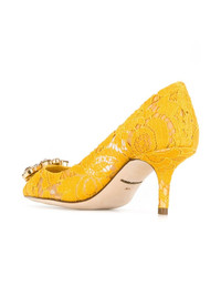 Rainbow Lace 60mm brooch-detail pumps Highlights - Dolce and gabbana live and breathe italian spirit - reflected within their collection of sleek ready-to-wear and accessories that redefine sicilian seductiveness. these yellow belluci taormina lace pumps feature a pointed toe, a swarovski crystal flower, a brand embossed insole and a low heel. Made in Italy Composition Silk 100% SIZE & FIT Measurement HEEL 2.75 in(7 cm)