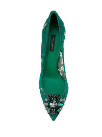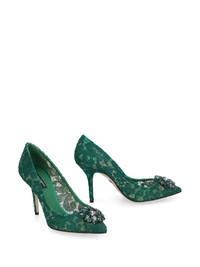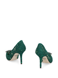 Rainbow Lace 90mm brooch-detail pumps Highlights - Dolce and gabbana live and breathe italian spirit - reflected within their collection of sleek ready-to-wear and accessories that redefine sicilian seductiveness. these green belluci taormina lace pumps feature a pointed toe, crystal embellishments, a brand embossed insole, a floral lace pattern and a high stiletto heel. Made in Italy Composition Cotton 100% SIZE & FIT Measurement HEEL 3.54 in(9 cm)