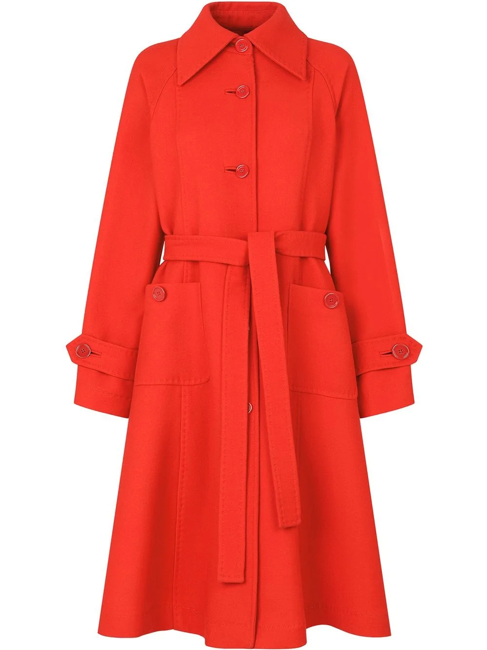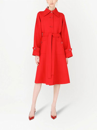 belted A-line trench coat The classic trench coat gets a vibrant upgrade in this iteration from Dolce & Gabbana. Presented in a lively red hue, this piece is imbued with a daring feel while maintaining timeless appeal. Made in Italy Composition Wool 100% SIZE & FIT Measurement SLEEVE LENGTH 29.92 in(76 cm) LENGTH 42.91 in(109 cm)