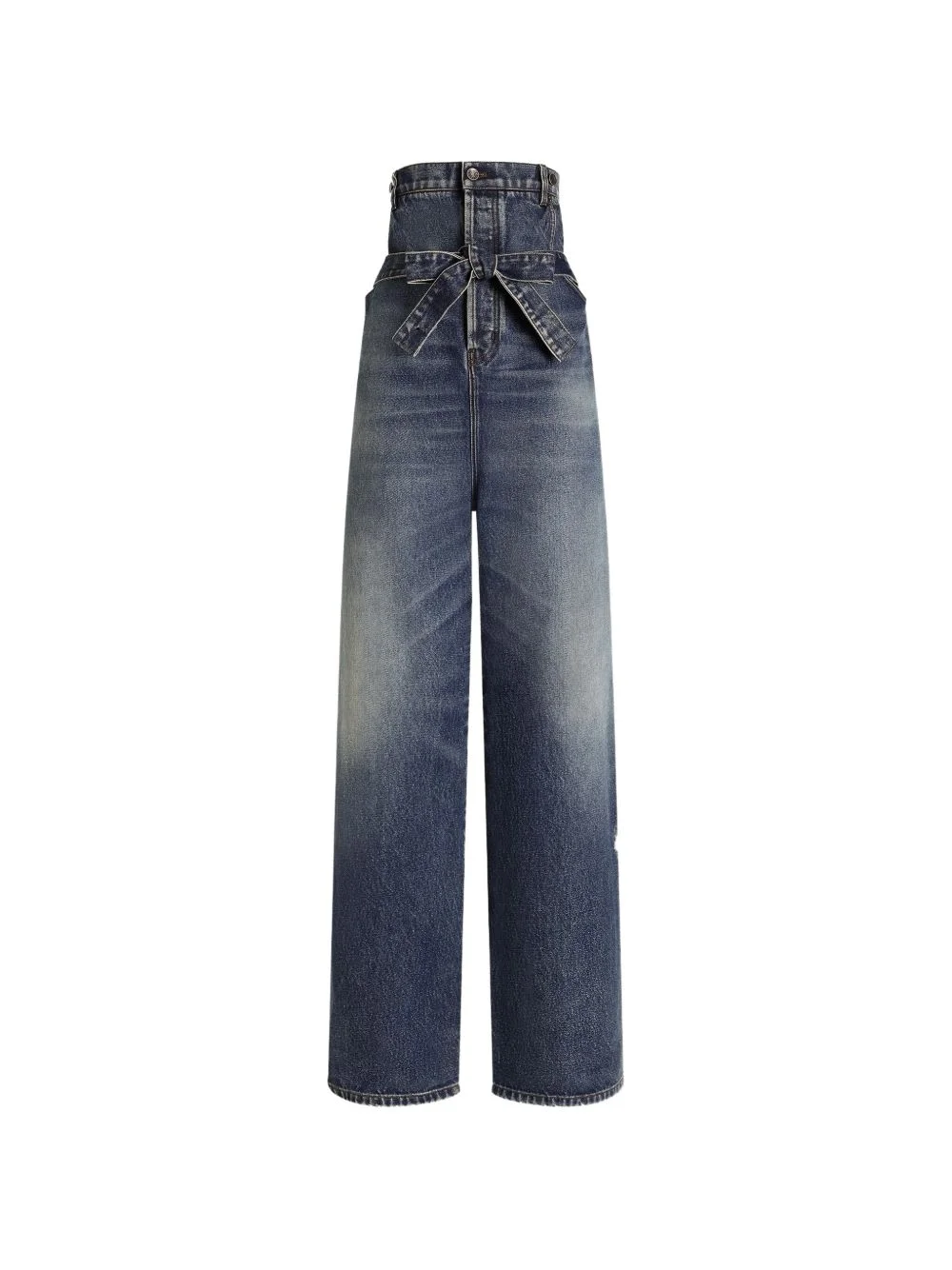 belted button-fastening jeans Highlights - Blue - Belt - Button fastening - Patch pocket - Wide leg - Faded effect Made in Italy Composition Cotton 100% Washing instructions Read Manufacturer Guidelines