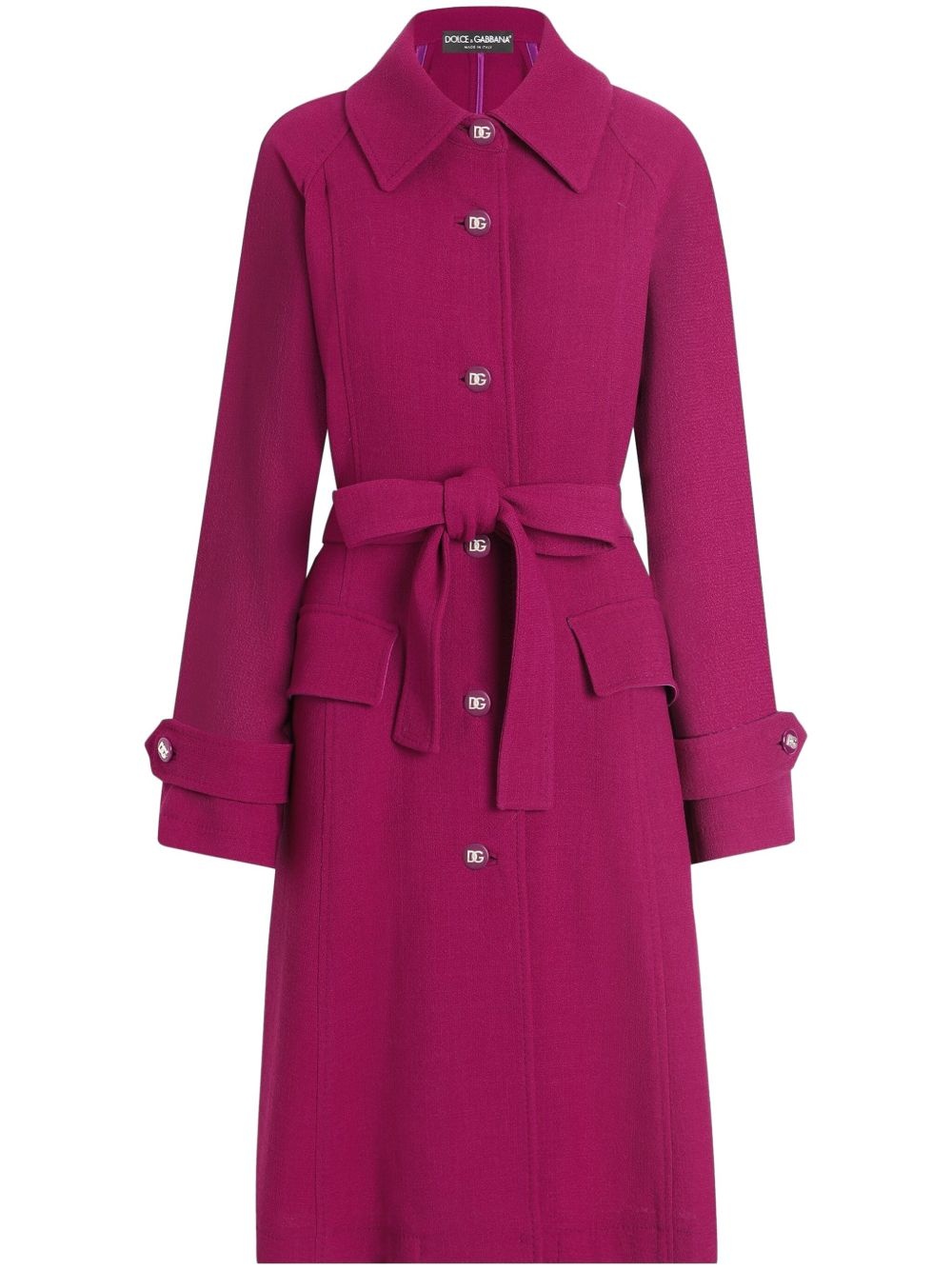belted coat Highlights - Plum purple - Front button fastening - Two side flap pockets - Classic collar - Belted cuffs Made in Italy Composition Outer: Wool 100%