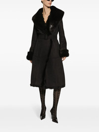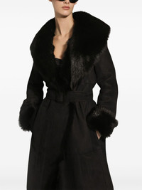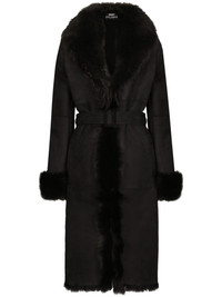 belted coat Highlights - Black - Lambskin - Faux-fur trim - Shawl lapels - Concealed front fastening - Long sleeves - Belted waist - Slip pockets to the sides - Mid-length - Straight hem Made In Italy Composition Outer: Lambskin 100%, Artificial Fur 100% Washing instructions Read Manufacturer Guidelines
