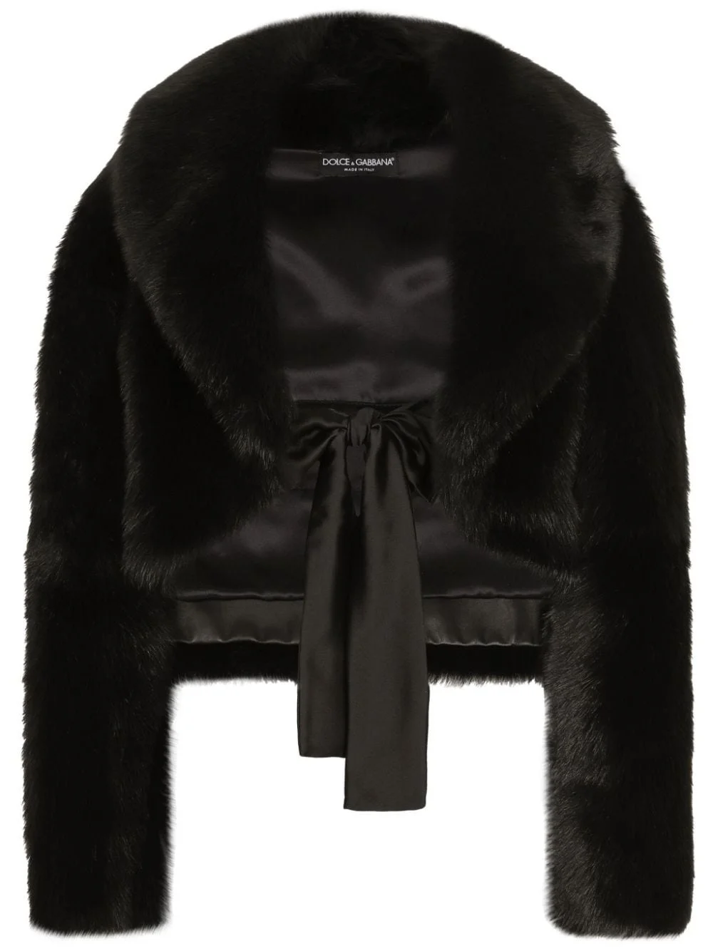 belted faux-fur jacket Highlights - Black - Faux-fur design - Brushed effect - Belted waist - Front tie fastening - Shawl lapels - Drop shoulder - Long sleeves - Satin lining - High-low hem Made in Italy Composition Lining: Silk 90%, Lambskin 10% Outer: Lamb Fur 100% Washing instructions Specialist Cleaning