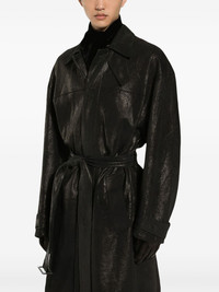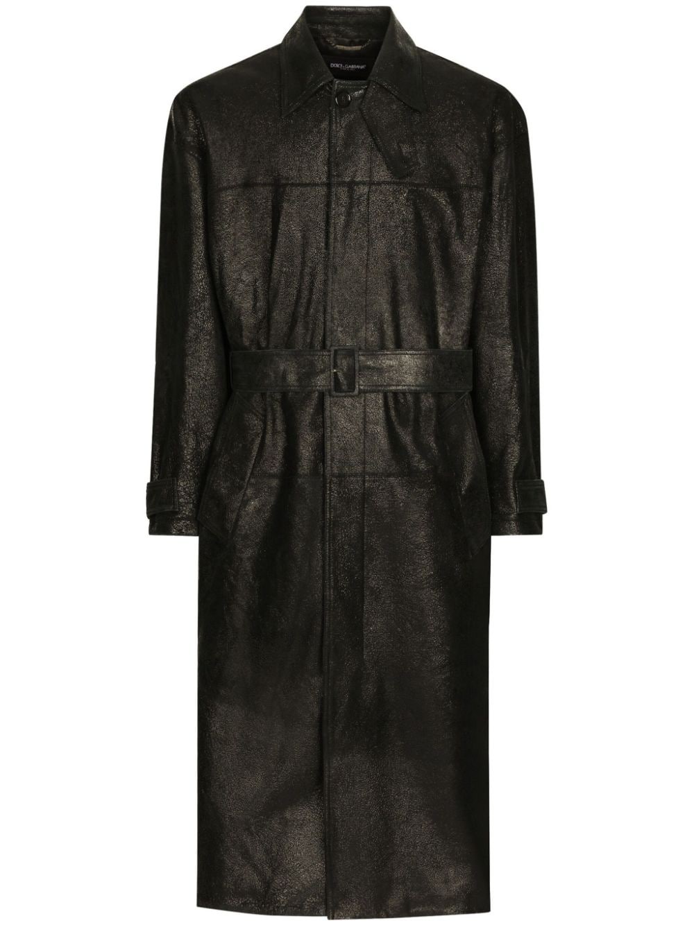 belted leather coat Highlights - Black - Sheepskin - Concealed front fastening - Classic collar - Belted waist - Two side inset pockets - Long sleeves - Straight hem Made in Italy Composition Lining: Viscose 100% Outer: Sheepskin 100%