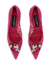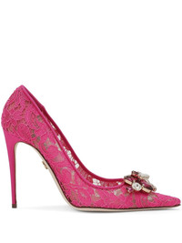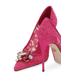 Belucci 90mm lace pumps Highlights - Hot pink - Guipure lace - Brooch detail - Crystal embellishment - Pointed toe - Slip-on style - Branded insole - 90mm stiletto heel - Leather sole Made in Italy Composition Cotton 100%