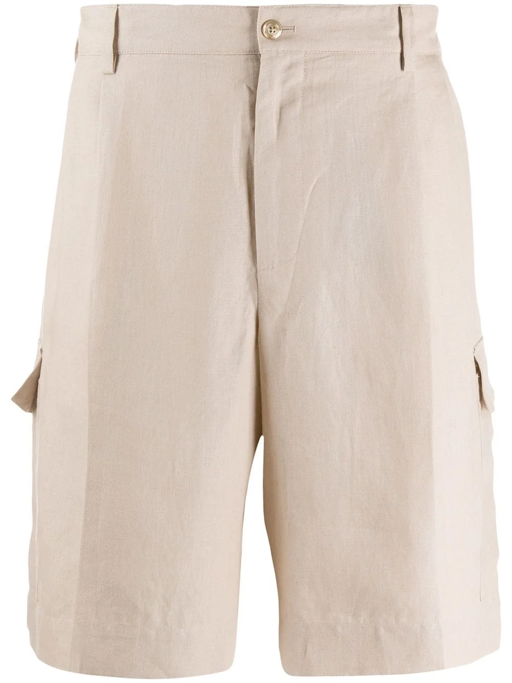 linen bermuda shorts Highlights - Yes, beige is a neutral shade. and yet we can't find a way to be neutral about these beige linen bermuda cargo shorts from dolce & gabbana. it's just not possible. featuring a mid-rise, belt loops, a button & zip fastening, side slit pockets, two back buttoned welt pockets, a knee-length and cargo-style flap pockets to the side. Made in Italy Composition Linen/Flax 100% SIZE & FIT Model measurements Height 6 ft 1 in(1.85 m) Bust/Chest 37.79 in(96 cm) Hips 37.4 in(95 cm) Waist 30.7 in(78 cm) FittingInformation This piece fits true to size. We recommend you get your regular size Cut for a loose fit Made with a mid-weight non-stretch fabric Washing instructions Dry Clean Only