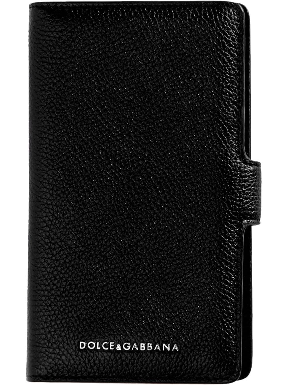 bi-fold iPhone 11 Pro case Protect your possessions with the best. This black calf leather iPhone 11 Pro case from Dolce & Gabbana opens up to reveal multiple card slots and a phone compartment. Secure your style. Highlights - Iphone 11 pro compatible - Black - Calf leather - Pebbled texture - Embossed logo to the front - Snap fastening - Internal card slot Made in Italy Composition Calf Leather 100% SIZE & FIT Measurement DEPTH 0.78 in(2 cm) LENGTH 3.54 in(9 cm) WIDTH 6.29 in(16 cm)