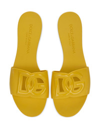 Bianca DG-logo slides Dolce & Gabbana injects these Bianca slides with its signature sense of branding. They're rendered in a yellow hue and are crafted with a front strap that spotlights the hallmark DG logo in three-dimensional lettering. Highlights - Mustard yellow - Open toe - Slip-on style - Branded insole - Flat sole Made in Italy Composition Lining: Thermoplastic Polyurethane (TPU) 100% Outer: Thermoplastic Polyurethane (TPU) 100% Sole: Thermoplastic Polyurethane (TPU) 100% SIZE & FIT Measurement Sole height 0.19 in(0.5 cm) HEEL 0.59 in(1.5 cm)