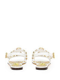 Bianca leather sandals Highlights - White/yellow - Calf leather - Gemstone detailing - Round open toe - Buckle-fastening ankle strap - Branded leather insole - Flat leather sole Made in Italy Composition Sole: Calf Leather 100% Lining: Calf Leather 100% Outer: Patent Leather 100%