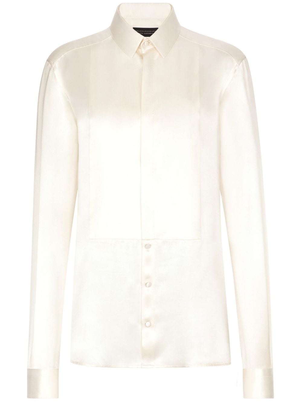 bib-detailed silk shirt Dolce & Gabbana presents its take on classic tailoring in this long-sleeved white shirt. Crafted from smooth silk, bib detailing is borrowed from the traditional tuxedo shirt silhouette for a sophisticated completion. Highlights - White - Silk - Bib detail - Classic collar - Front button fastening - Long sleeves - Buttoned cuffs - Straight hem Made In Italy Composition Silk 100% Washing instructions Read Manufacturer Guidelines