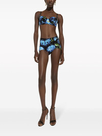 Bluebell balconette bikini set Dolce & Gabbana found inspiration in the '60s to develop the Flower Power collection, in which maximalist floral motifs are key. Rendered in shades of blue and green, the romantic Bluebell print is a perfect example and entirely decorates this bikini set — fashioned with a retro-inspired balconette top and high-waisted bottom. Highlights - Black/multicolour - Stretch-design - All-over floral print - Top: - Balconette style - Underwire cup - Adjustable spaghetti straps - Rear hook fastening - Bottom: - High waist - Silver-tone logo plaque - Slip-on style - Be mindful to try on swimwear over your own garments. Imported Composition Polyamide 72%, Spandex/Elastane 28% Washing instructions Read Manufacturer Guidelines