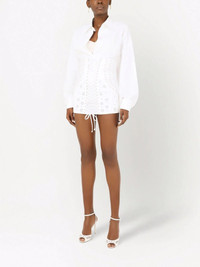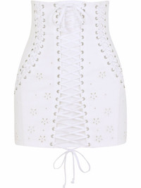 lace-up embroidered miniskirt Highlights - Optical white - Cotton-blend - Stretch-cotton - Floral embroidery - Crossover strap detail - High-waisted - Front tie fastening - Above-knee length Made in Italy Composition Cotton 97%, Elastane 3% SIZE & FIT Measurement HIPS 35.43 in(90 cm) LENGTH 17.71 in(45 cm) WAIST 27.55 in(70 cm)