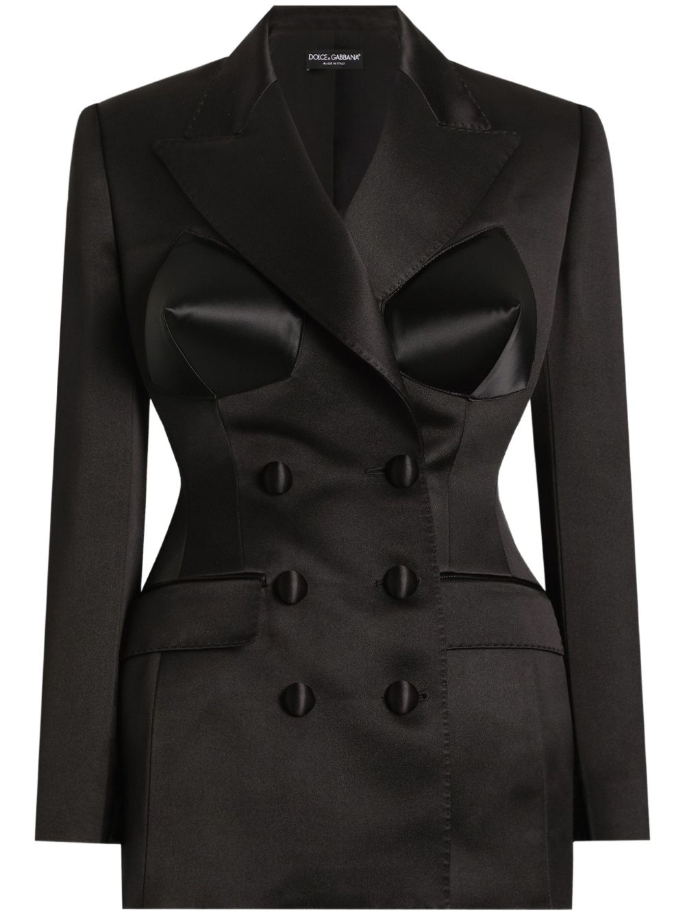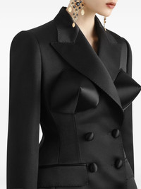 bouble-breasted duchess blazer Highlights - Black - Double-breasted button fastening - Two side flap pockets - Satin trim - Peak lapels Made in Italy Composition Outer: Silk 93%, Acetate 4%, Polyamide 2%, Spandex/Elastane 1% Lining: Silk 92%, Spandex/Elastane 8%