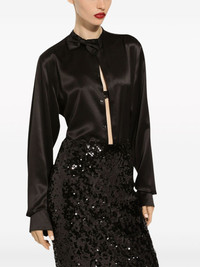 bow-detail long-sleeve shirt Highlights - Black - Stretch-design - Satin finish - Bow detailing - Collarless - Front button fastening - Long sleeves - Buttoned cuffs - Straight hem Made in Italy Composition Polyamide 94%, Spandex/Elastane 6% Washing instructions Read Manufacturer Guidelines