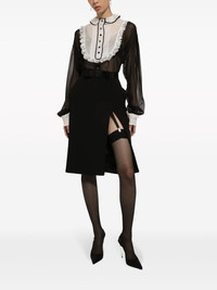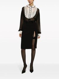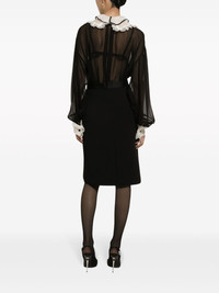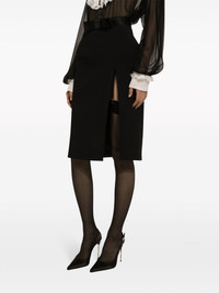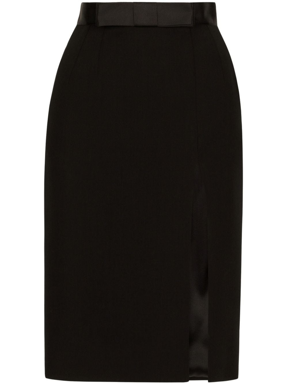 bow-detail virgin wool-blend skirt Highlights - Black - Virgin wool blend - High-waisted - Bow detailing - Knee-length - Side slit - Straight hem Made in Italy Composition Virgin Wool 60%, Polyamide 37%, Spandex/Elastane 3%