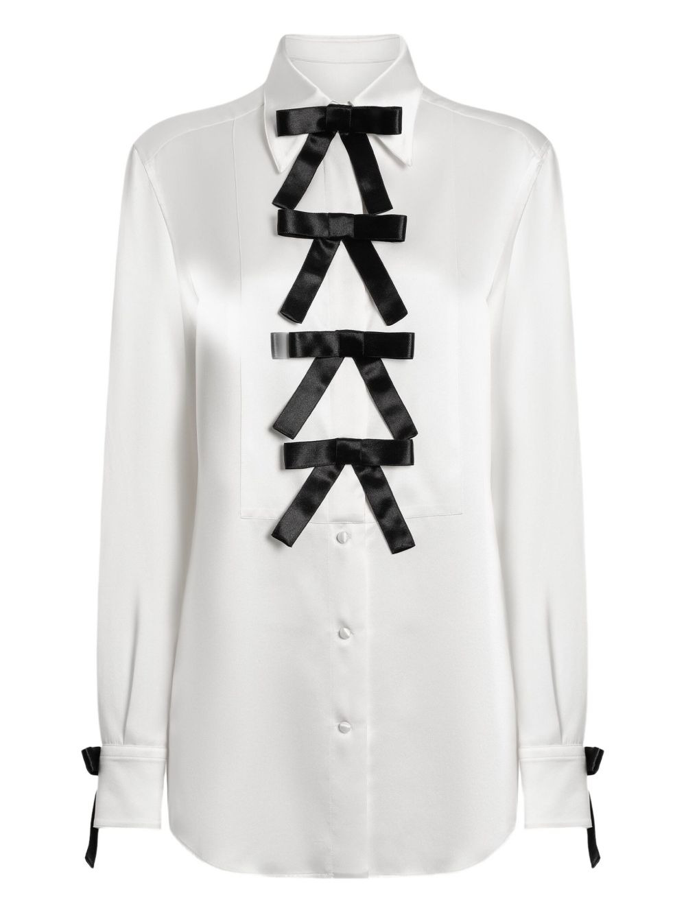 bow-embellished satin blouse Highlights - White - Contrast bow detailing - Button fastening - Long sleeves - Adjustable cuff bows Made in Italy Composition Silk 100% Washing instructions Read Manufacturer Guidelines